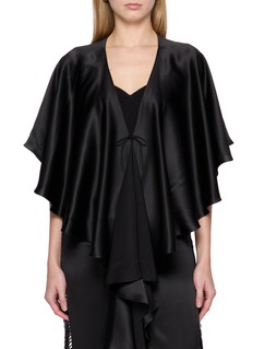 Sharon Wauchob 这款上衣以缎面雪纺衬出柔滑光泽,披肩版型营造松弛氛围,系带细节可调节造型,纯黑调适配多风格。搭同材质内搭显统一质感,配简约单品衬层次,是轻社交与日常穿搭的精致点缀款。