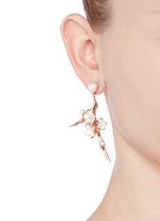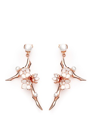 Embellished with diamonds and cultured freshwater pearls, the Japanese cherry blossoms on these Shaun Leane branch drop earrings set the beauty and grace of nature's transient existence in full bloom.