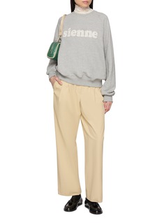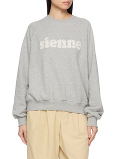 Sienne’s signature ease is reimagined through soft volume and romantic texture in this cotton-blend sweatshirt. The lace-filled logo brings a gentle contrast to the athletic silhouette, creating an elevated casual piece that pairs seamlessly with denim, tailored shorts, or fluid skirts.