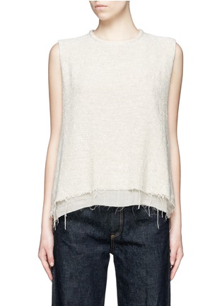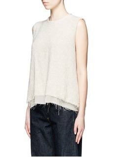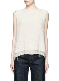 Simon Miller以结合日本材质与现代美式做工为宗旨,自2008年创立以来渐渐由男装扩展至女装及包袋系列。这款背心采用双层设计,表层的针织面料与纯棉底层均轻巧透气,宽松版型配以须边下摆更添随性气息。