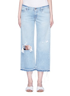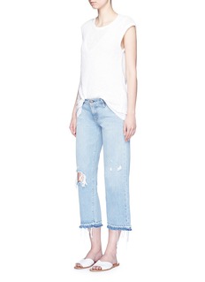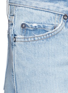 Simon Miller于2008年以制作男装服起家,秉承挑选优质素材与精湛工艺的宗旨,将优质单品带入女装系列。这款牛仔裤拥有流行的直脚阔腿剪裁,一边膝盖明显的磨破效果自然随性,与七分长度及裤腿口须边设计相衬托,体现简约率性的个性格调。
