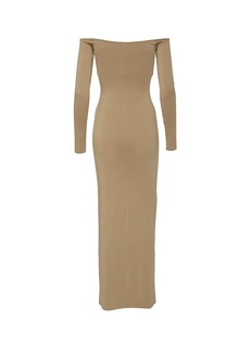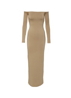 SKIMS 推出的 Smooth Lounge 系列采用超柔软的面料制成,专为你的夜间造型而设计。这款连衣裙采用长袖设计演绎经典款式。紧身廓形、迷人的一字露肩和垂坠长款设计,让你尽情展现你的优美曲线。