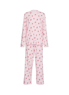 SKIMS 推出的 Boyfriend 系列以优质面料结合精湛的工艺打造舒适衣着。这款长袖套装以宽松版型打造中性风格,整体版型简洁大方,可做家居服穿着,圣诞主题印花勾勒俏皮节日氛围。