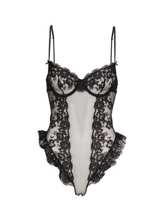 Embroidered Lingerie 带来高调而大胆的服饰。这款吊带连体衣采用丝绸包边肩带,并以蝴蝶结细节点缀,蕾丝面料带来点睛之笔。