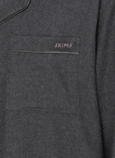 SKIMS 由金·卡戴珊(Kim Kardashian)一手创立,主打日常内衣、功能内衣及家居服,迎合不同身形及肤色的顾客需要。这款长袖睡衣套装以舒适法兰绒面料剪裁,光泽缝边细节勾勒质感格调,丝滑融入你的秋冬居家衣橱。