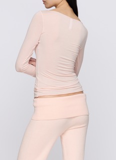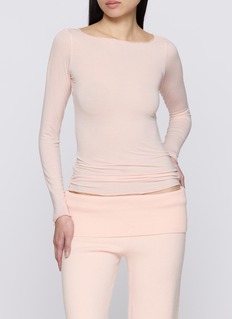 Sheer Modal 系列为你打造迷人家居服,以柔软莫代尔羊绒混纺面料呈现半透明质感与垂坠剪裁。这款 T 恤随身形舒展延展,将舒适感提升至新境界。