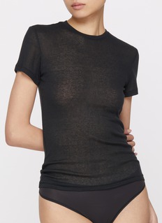 SKIMS 的 Sheer Rib 系列 T 恤采用轻盈透气的棉质混纺面料打造,带来柔软亲肤的贴身穿着体验。面料呈现微透质感,凸显极简主义美学。剪裁贴合身体曲线,可单穿或作为内搭,适合日常多种造型需求。无论是休闲居家,还是外出叠搭,都能展现低调而自信的风格。