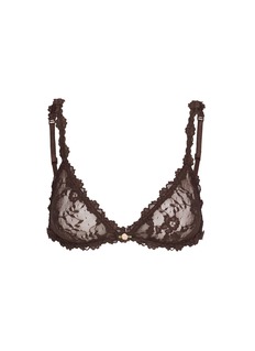 SKIMS 推出的这款文胸采用弹力蕾丝设计,贴合曲线,带来如裸感般的舒适体验。精致花饰点缀浪漫,兼顾优雅与实穿性。