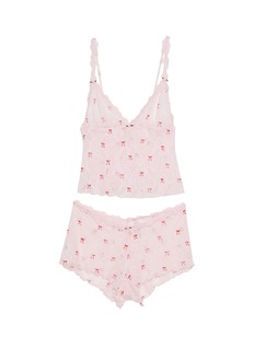Stretch Lace 系列用奢华的光泽面料满足你的心。 这款弹力吊带短裤套装款式带有色调一致的蕾丝边、精致的玫瑰花细节和甜美的扇形边缘,为你再添一份浪漫。