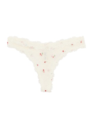 Stretch Lace 系列用奢华的光泽面料满足你的心。 这款丁字裤带有色调一致的蕾丝边、精致的玫瑰花细节和甜美的扇形边缘,为你再添一份浪漫。