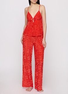 SKIMS 以细腻的丝绒点缀和微微透视的面料为你勾勒都市里的一抹浓郁情愫。这款套装包含一件吊带和一件长裤,爱心的点缀与系带细节带来俏皮格调。