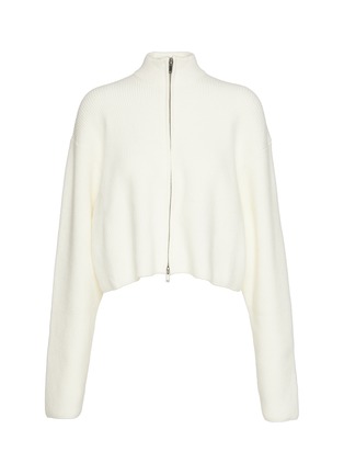 A layer that looks as good as it feels. Designed in SKIMS' plush wool-cashmere blend, this relaxed, mock neck sweater features a two-way zipper and side pockets. Finished with ribbed details at the neckline, cuffs, and hem.