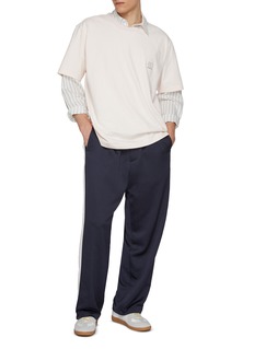 Solid Homme’s T-shirt redefines everyday essentials with the brand's distinctive innovation. Cut into a boxy fit, it offers a relaxed style that is elevated by its stitched logo embroidery. Pair with track pants for a laid-back, stylish ensemble.