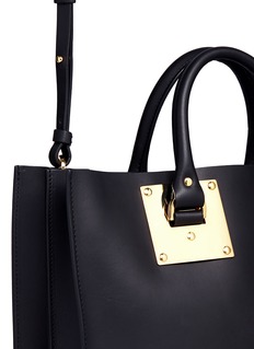 Sophie Hulme的Albion箱形手提包凭借简约利落的线条与充满摩登感的设计深受喜爱,挺括的黑色牛皮与金色配件组合摩登时尚,内部容量充裕、间隔合理,能够放置文件、iPad或化妆品等,是打造日常造型的必备单品。