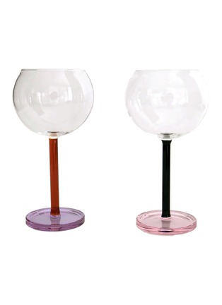 A pair of playful wine glasses in the French ballon style. Perfect for your everyday table wine, festive enough for your best bordeaux. Each pair comes in a set of two mismatching, but complimentary, colour combinations.
