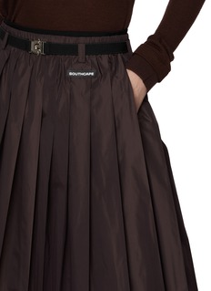 韩国高端设计师品牌 Southcape 由同名高尔夫度假场汲取灵感,旨在打造新一代高尔夫奢华风格。这款半身裙以腰带缀饰为简约褶裥 A 字版型增添一丝层次感,为休闲街头穿搭融入轮廓浓墨一笔。