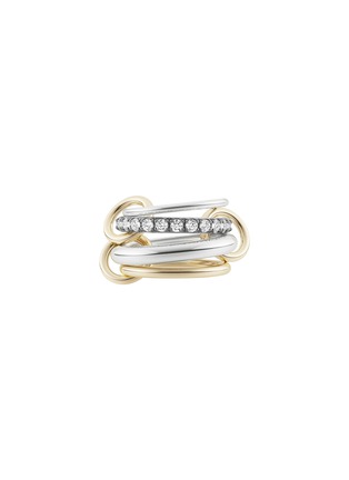 The Janssen features four multi-gauged linked bands with u-pavè set diamonds and orbiting 18k gold connectors. Meticulously handmade in Los Angeles, each ring is a show of exceptional craftsmanship and premium materials.