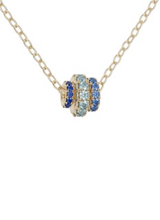 The Vesta Necklace dazzles with three 18k yellow gold annulets, each adorned with pavé-set blue gemstones. Its vibrant colors and intricate design create a luxurious, eye-catching statement. A perfect blend of elegance and modern sophistication for any occasion.