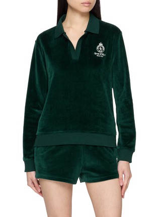 A refined nod to heritage tennis style, this long-sleeve polo is crafted in plush velour cotton for a soft, elevated feel. Finished with a classic collar and embroidered crest, it moves seamlessly from relaxed weekends to polished off-duty pairings with tailored shorts or denim.