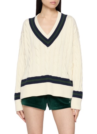 Sporty & Rich 融合复古美学与现代简约的生活方式,展现充满美感的生活理念。这款针织衫采用质感麻花针织纹理,撞色细节更呼应复古运动文化。