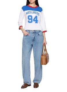 Sporty & Rich 融合复古美学与现代简约的生活方式展现充满美感的生活理念。这款 T 恤精选柔软亲肤的纯棉面料裁就,红蓝拼色与七分袖设计营造出浓厚的复古运动氛围。