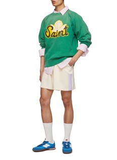 ST MICHAEL 诞生灵感来源于欧洲神话中的大天使米迦勒,品牌基调与宗教美学密不可分。这款卫衣以丝网印刷图案与做旧元素带来神秘风格,插肩袖版型带来无拘运动体验,助你打造吸睛出街装束。