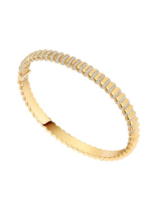 The Borsh bangle captures the essence of quiet strength through illusion. Its faceted design beautifully alternates between a brilliant sparkle of pavé diamonds and a smooth gleam of gold, reflecting a balance of exploration and tranquillity. A versatile and timeless piece for any moment.