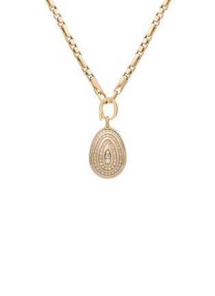 Meet the Cosmic Egg locket pendant. Inspired by a celestial voyage, they capture wonder in motion. Concentric rings of diamonds orbit a sculptural egg silhouette, radiating light. Thoughtfully contoured, they balance striking presence with an impossibly light feel—a timeless reminder that curiosity is always alive.