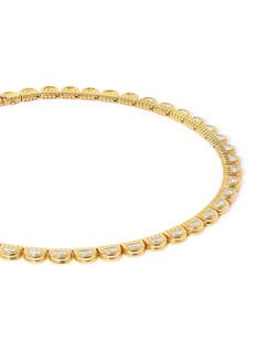 The Marmara Necklace captures the fluid energy of its namesake sea. Interlocking gold mounds and encased half-moon diamonds play with light and shadow in one effortless gesture. Inspired by ancient Byzantium, this piece is a study in dynamic elegance—easy to wear, impossible to overlook.