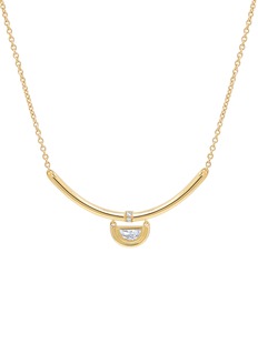 The Sophia Diamond Bar Necklace in 18K yellow gold exudes timeless elegance with its sleek, curved bar design and sparkling diamond accents. A delicate yet striking piece, it effortlessly elevates any look with a touch of modern sophistication. Perfect for both everyday wear and special occasions.
