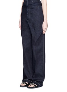 斯特拉麦卡特尼这款裤子采用富弹力的牛仔质感面料制作,白色车缝线点亮了低调的深蓝色,利落的阔腿设计令双腿更显纤长,同时突显了品牌所推崇的优秀做工,是新季不可或缺的百搭单品。