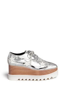斯特拉麦卡特尼此款系带鞋夸张前卫,银色主调配上白色星星拼贴十分抢眼,最大亮点属中层的棕色木制坡跟鞋底,别具独特个性,加上底层的锯齿橡胶鞋底,令双腿看起来更为纤长,潮流先锋绝对不容错过。