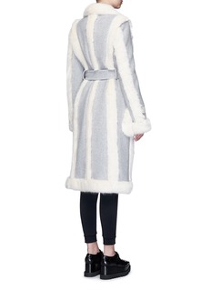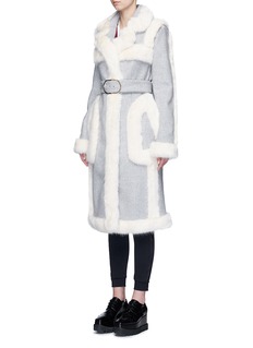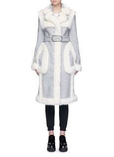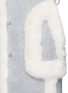 此款斯特拉麦卡特尼的大衣为您的冬日造型注入奢华气息,混灰色混羊毛面料大气素雅,贯彻品牌的环保理念,以人造毛饰作点缀亦同样高贵,附有一根腰带,并以一个金色椭圆形针扣固定,修饰腰线同时展现前卫格调。