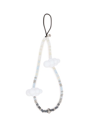String Ting's hand-beaded phone strap features an enchanting gradient of glass beads punctuated by whimsical cloud charms and branded detailing. The artisanal design flows from lustrous pearl-like beads through a sophisticated ombré effect, secured with a cord loop attachment. A dreamy accessory that transforms your phone into a wearable fashion statement.