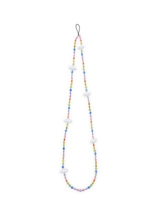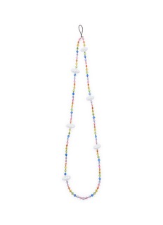 String Ting's beaded phone strap combines vibrant rainbow-hued glass beads with sculptural star charms for a playful yet practical accessory. The hand-strung design features graduated beading and a secure loop attachment for phones or small essentials. An artisanal piece that adds joyful, nostalgic charm to everyday tech.