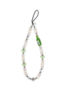 Celebrate everyday moments with the String Ting Cheers to Fun Beaded Wristlet. This playful accessory is adorned with a mix of soft pearl-like beads and green heart accents, leading to a quirky miniature green bottle charm. It's the perfect accessory for those who enjoy a touch of whimsy and a reminder to always find joy in the small things.