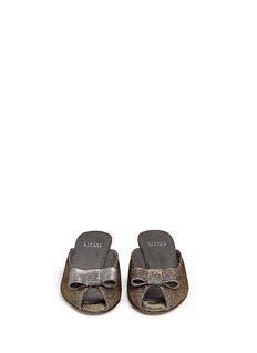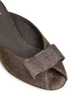 这双斯图尔特韦茨曼的Candy凉鞋就如其名字般甜美可人,鞋头精致的蝴蝶结点缀优雅十足,金银色闪光面料在灯光下格外抢眼,弧形高跟设计流畅独特。不妨搭配及膝半身裙或直脚长裤,塑造高贵大气形象。
