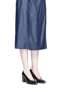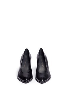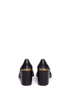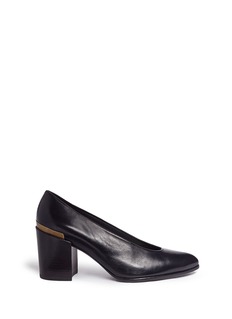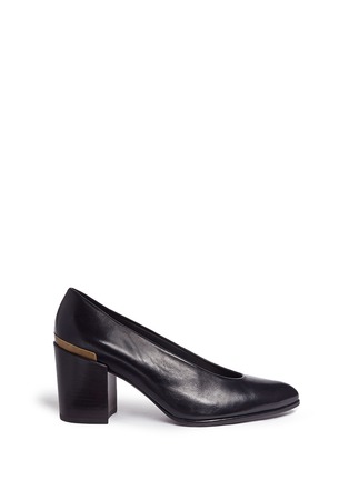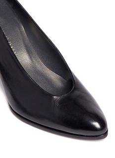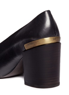 斯图尔特韦茨曼的鞋履简约中散发都市魅力,这款高跟鞋以光滑黑色真皮打造,鞋跟处拼贴品牌缩写刻印的金属装饰,低调别致。粗跟设计可以拉长腿部,又减少足部压力,行走舒适自如,是您通勤或休闲都百搭的选择。