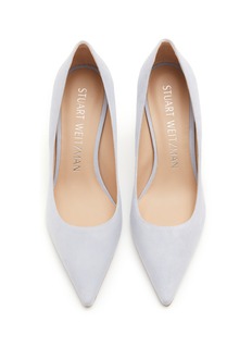 Stuart Weitzman 这款高跟鞋的线条简约利落,配有尖鞋头和时尚细高跟,尽显精致柔美的经典风格。绒面皮革展露复古韵味,风格大气百搭,助你轻松打造各式造型。