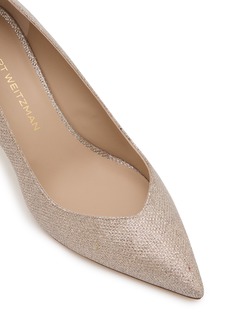Subtle shimmer meets sculpted poise in these Stuart Weitzman pumps, where the iconic Eva silhouette is reimagined in a refined glitter fabric. The pointed toe and mid-height heel create an effortless elongation, making them a luminous choice for evening soirées or elevated daywear.