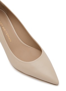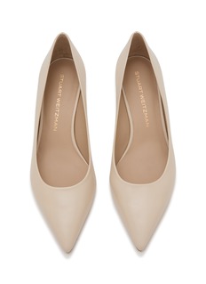 This Stuart Weitzman design highlights the sleek geometry of the Power 50 silhouette, rendered in smooth leather and a softly refined nude tone. The pointed toe and balanced 50 mm heel create a clean, elevated line—an elegant complement to both tailored looks and effortless day-to-evening dressing.
