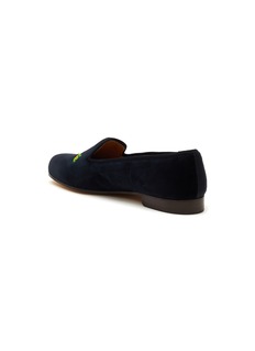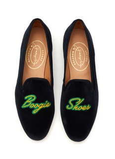 Stubbs and Wootton presents this pair of velvet loafers, captivating with their sophisticated playfulness. Adorned with a whimsical lettering embroidery, this pair will elevate your ensembles with an air of elegance.