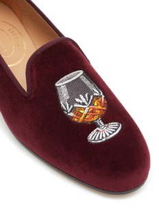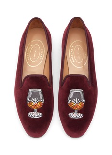 Stubbs and Wootton presents this pair of velvet loafers, captivating with their sophisticated playfulness. Adorned with a whimsical embroidery of brandy glasses, this pair will elevate your ensembles with an air of elegance.