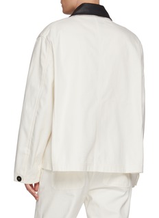 Referencing classic American barn jackets, this design balances utility and restraint through Studio Nicholson’s considered proportions. Cut from structured cotton canvas and finished with a contrasting leather collar, it offers a refined outer layer for everyday dressing.