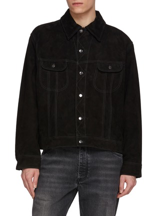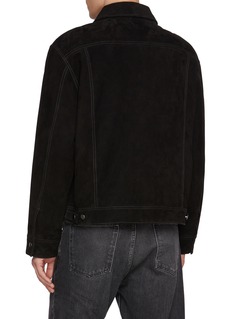 A modern reinterpretation of a classic, this jacket is part of the Studio Nicholson X Aaron Levine collaboration, where heritage silhouettes meet contemporary proportion. Crafted in supple goat suede, its relaxed, boxy cut softens the traditional trucker, lending understated ease to everyday layering.