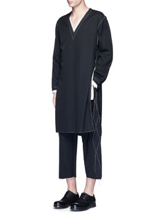 Sulvam的设计师藤田哲平曾于山本耀司的工作室担任打版员,品牌自然呈现出流畅独特的剪裁与多变的时尚风格。此款长上衣贯彻新季系列主打的宽松剪裁,并以轻盈的羊毛面料塑造飘逸效果,衣摆两边开衩,走路时格外灵动大气,让您打造帅气的街头造型。