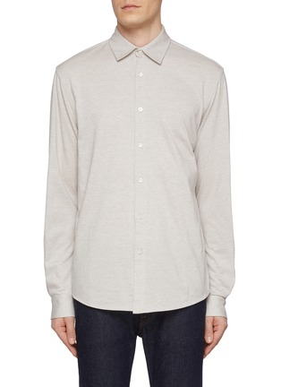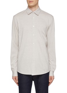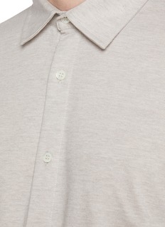Experience the ultimate in luxury with Sunspel’s jersey shirt, crafted from the finest cotton and cashmere. The meticulous attention to detail and superior craftsmanship offer a soft feel and a perfect fit with lasting quality and comfort. Pair it with tailored pants and dress shoes for a classic look.