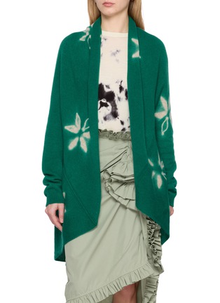 Wrap yourself in the lush comfort of this SUZUSAN cardigan, a masterpiece of traditional craftsmanship and modern style. Crafted using the age-old Shibori tie-dye technique, this cardigan showcases a vivid emerald green hue, accentuated by delicate leaf motifs that enhance its aesthetic appeal. The soft, luxurious fabric ensures warmth and comfort, making it a perfect addition to any transitional wardrobe.