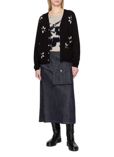 This exquisite SUZUSAN cardigan, meticulously crafted using traditional Shibori techniques, is a testament to the fusion of timeless craftsmanship and contemporary design. The cardigan's deep black fabric serves as a canvas for striking white floral motifs, creating a bold visual contrast that is both elegant and eye-catching. Each detail is hand-dyed, ensuring that no two pieces are exactly alike, offering a unique garment rich in cultural heritage. Its classic button-down front and soft, comfortable material make it versatile for layering over various outfits, suitable for both casual and formal settings.