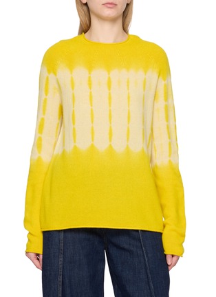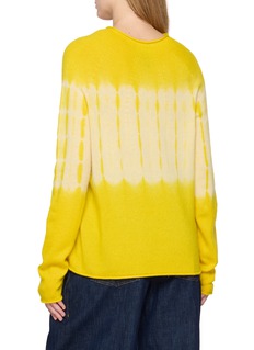 This vibrant SUZUSAN sweater is a celebration of color and traditional Shibori dyeing techniques. The lively yellow hue fades into a softer, creamy yellow, creating a refreshing ombre effect that is sure to brighten any ensemble. Crafted from sumptuously soft wool, the sweater offers not only visual appeal but also comforting warmth. Its classic crewneck design and long sleeves make it an ideal choice for chilly days, while the unique dye pattern ensures it stands out in any wardrobe.